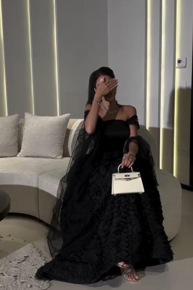فستان الاناقة خامه تفته مع تل دبل كلوش
