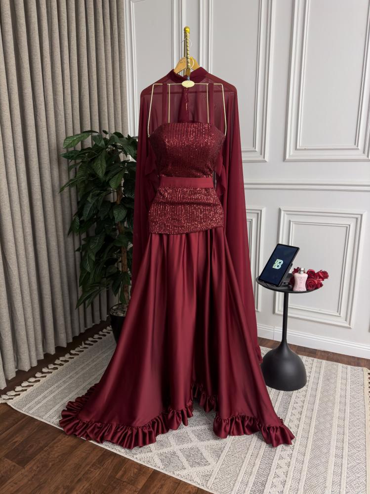 فستان انيق خامة شيفون جورجيت اصلي مع صدريه ترتر