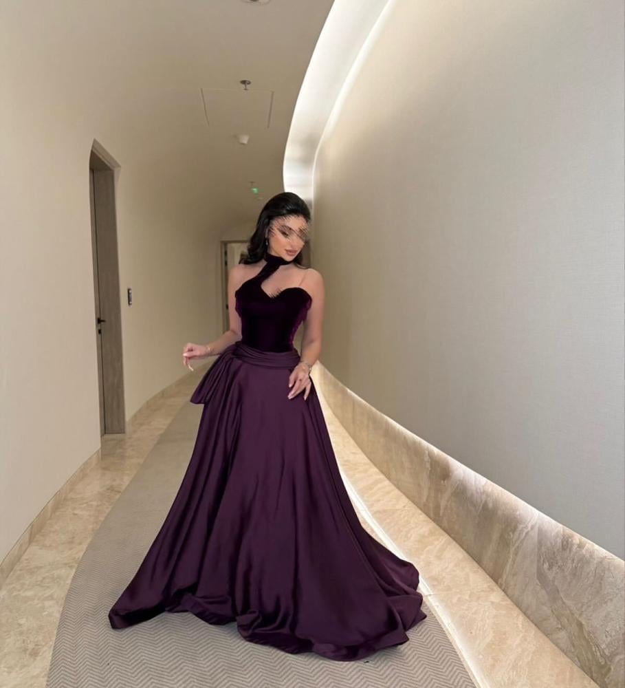 فستان انيق خامة مخمل جوخ اصلي مع تفته