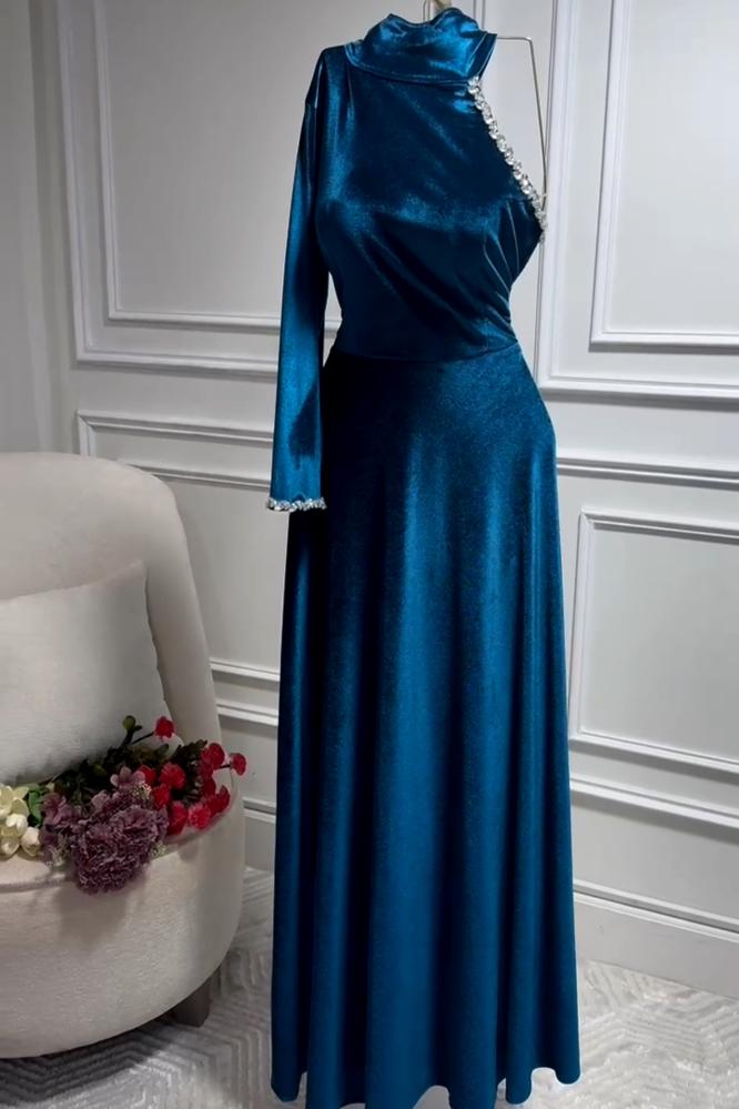 فستان انيق خامة مخمل كوري اصلي مع تطريز كريستال