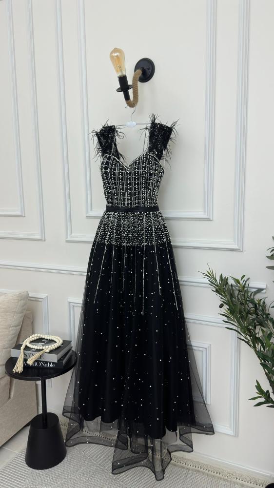 فستان خامة تل وفصوص زركون تطريز فاخر