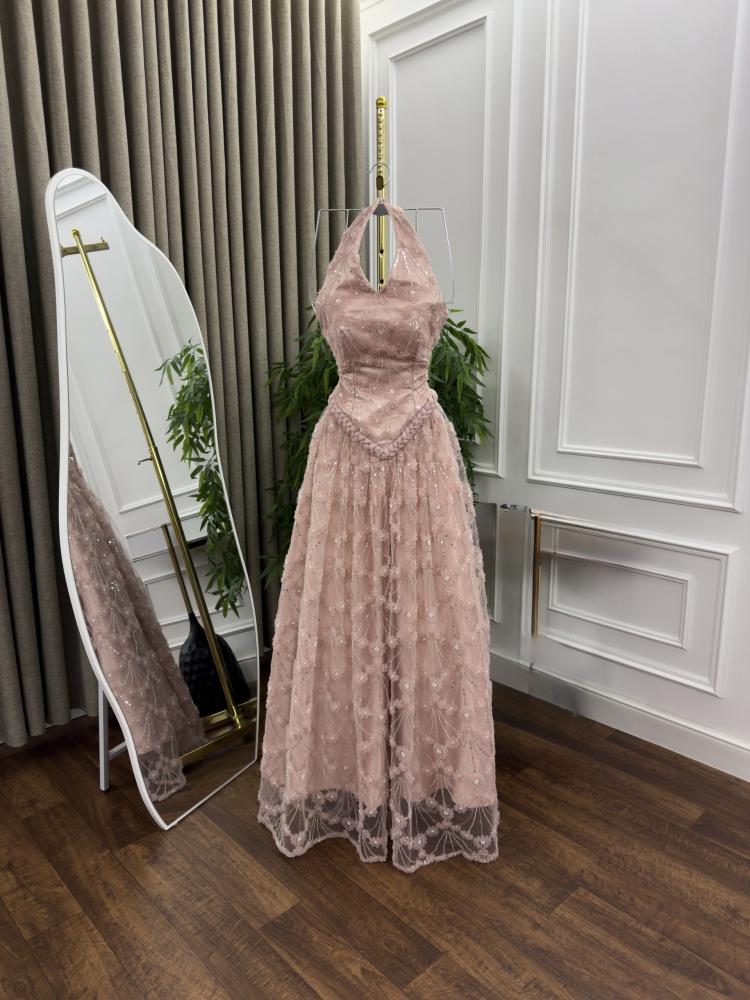 فستان خامة كلفه تول كوري ورود بطانه تفتة