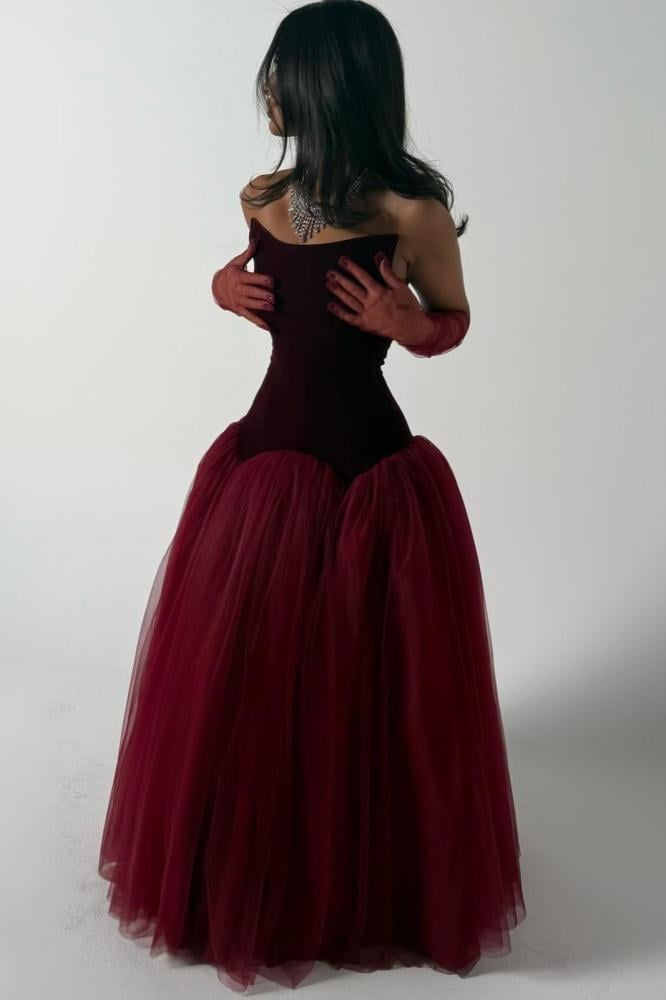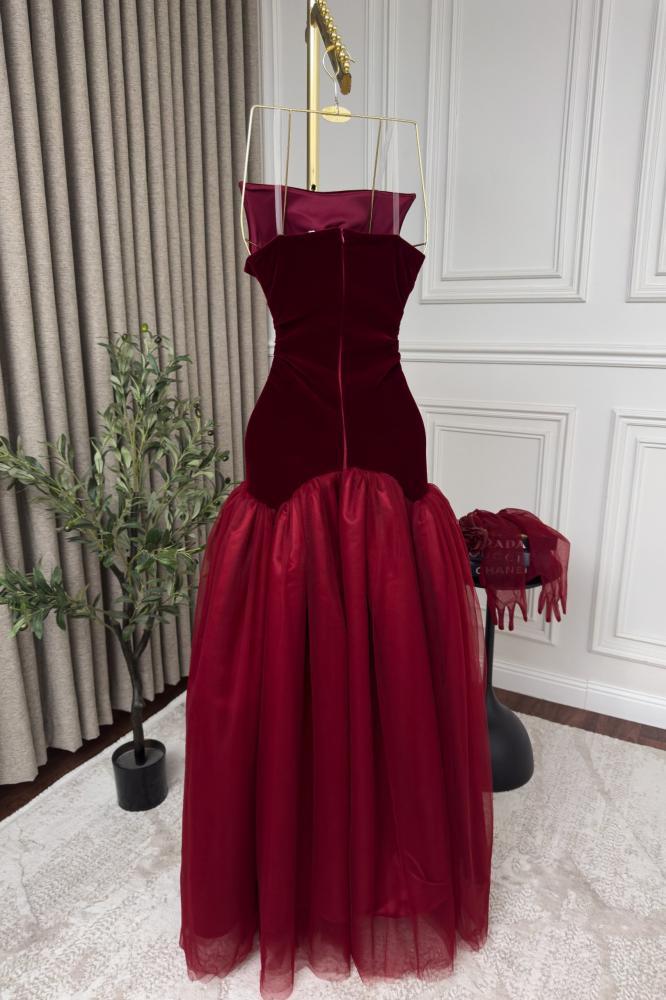 فستان خامه مخمل جوخ فرنسي مع تول وبطانه تفته