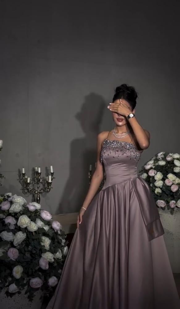 فستان سهرة انيق خامة تفته حرير تطريز احترافي