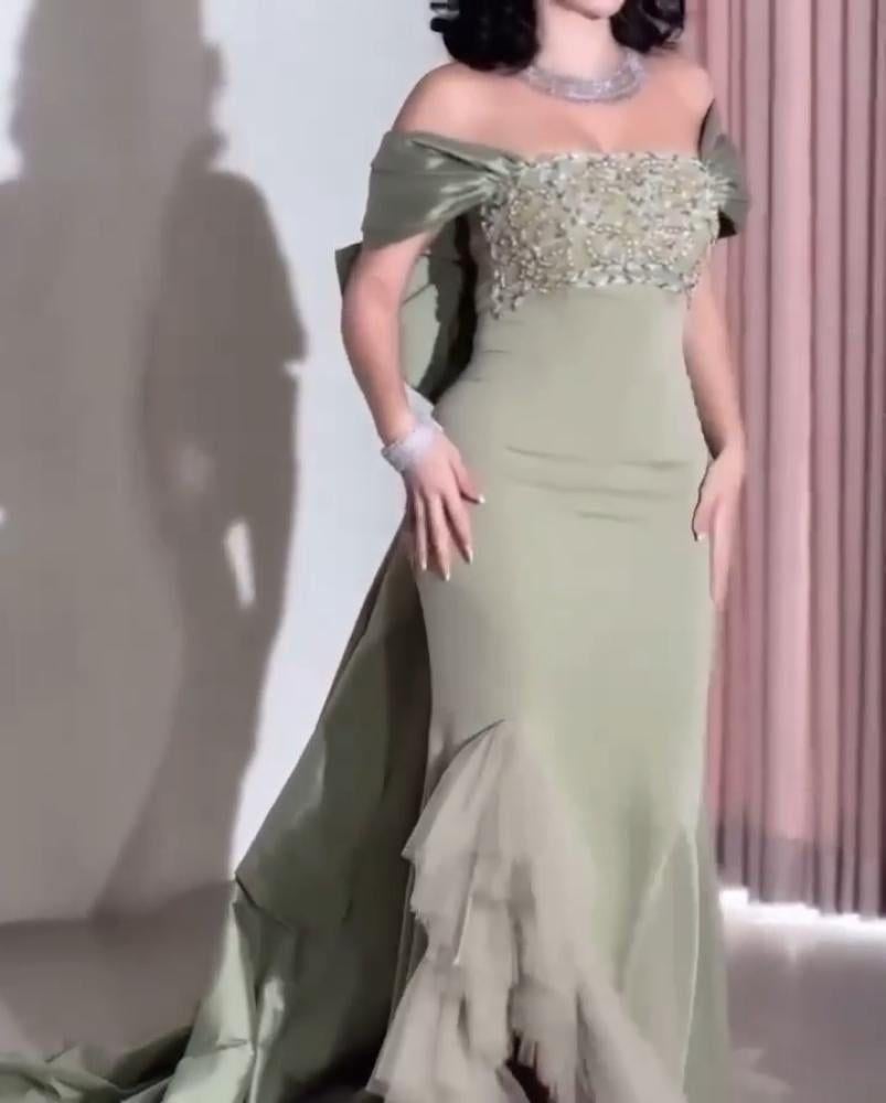 فستان سهرة باربي وذيل طويل شانطون تطريز شك
