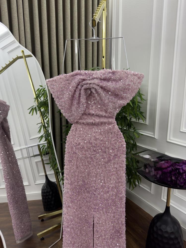 فستان سهرة تول كوري اصلي مطرز خرز بتصميم راقي