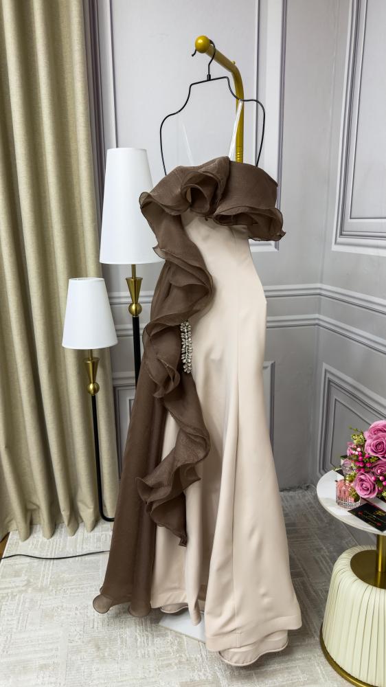 فستان سهرة جميل خامه ميكادو أكمام تل كوري