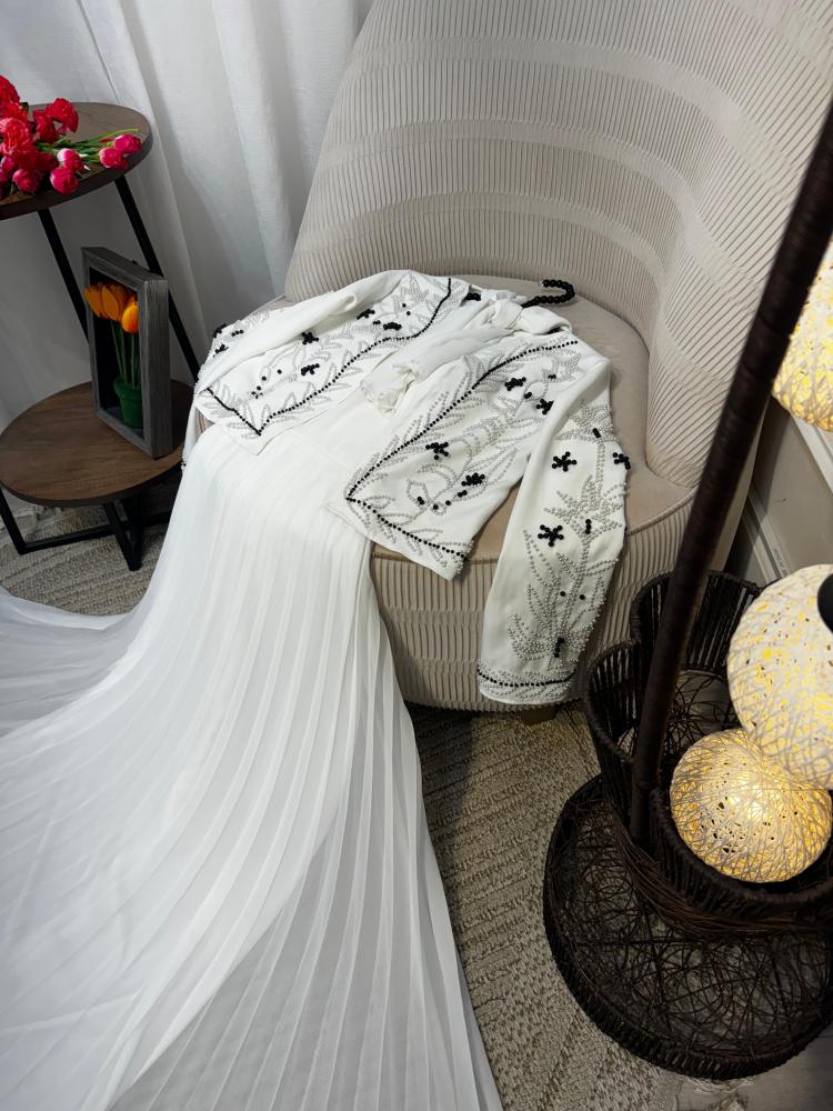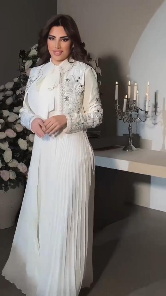 فستان سهرة خامة شيفون جورجيت تكسيره بوليسية جاكيت باربي تطريز يدوي