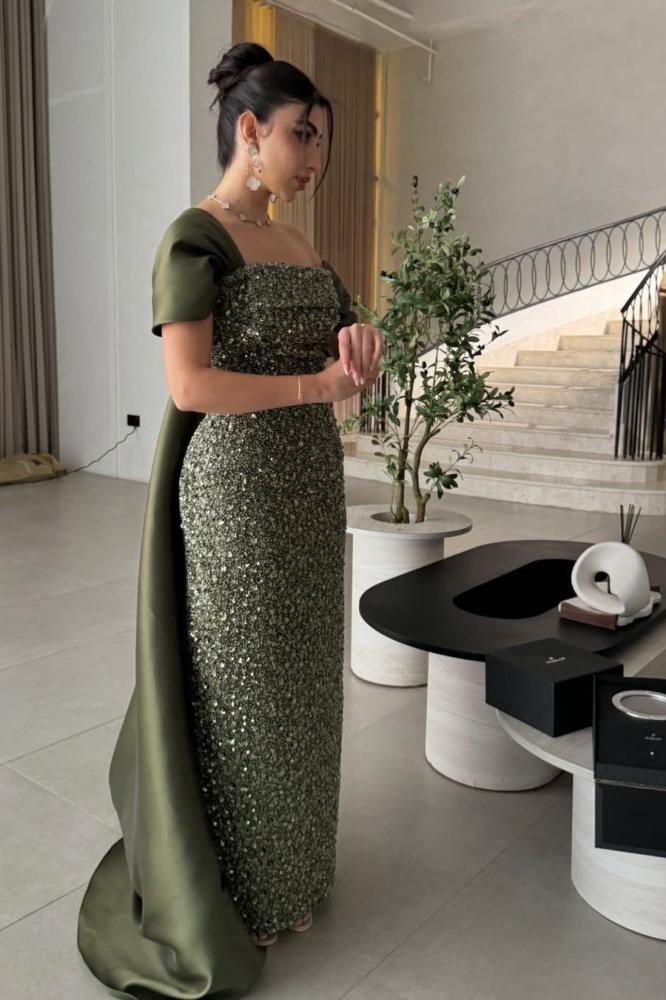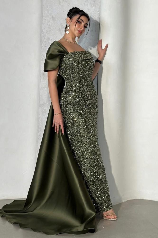 فستان سهرة خامة ميكادو +كلفة مطرزة