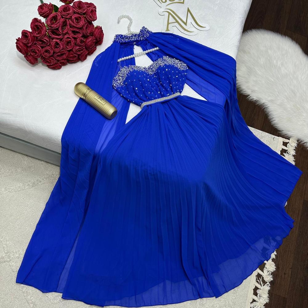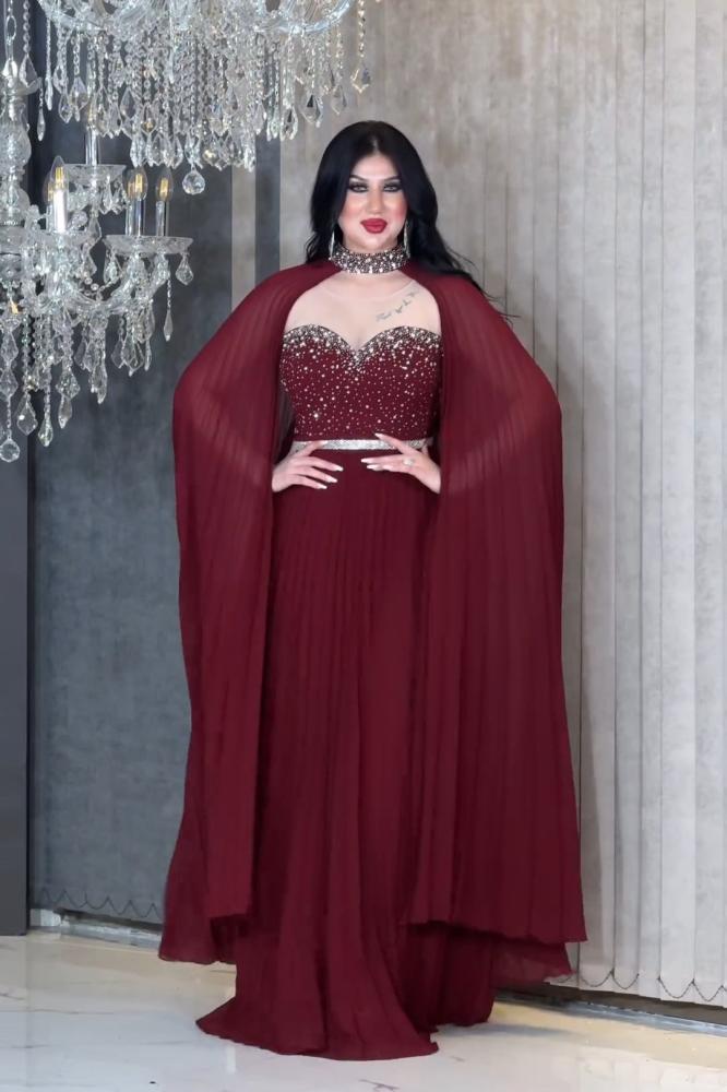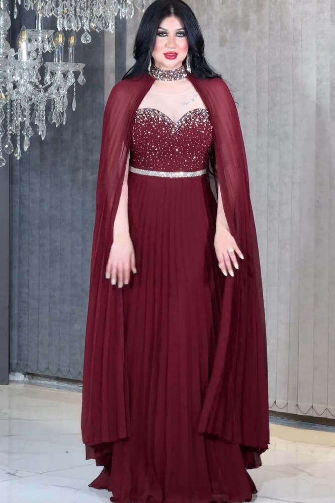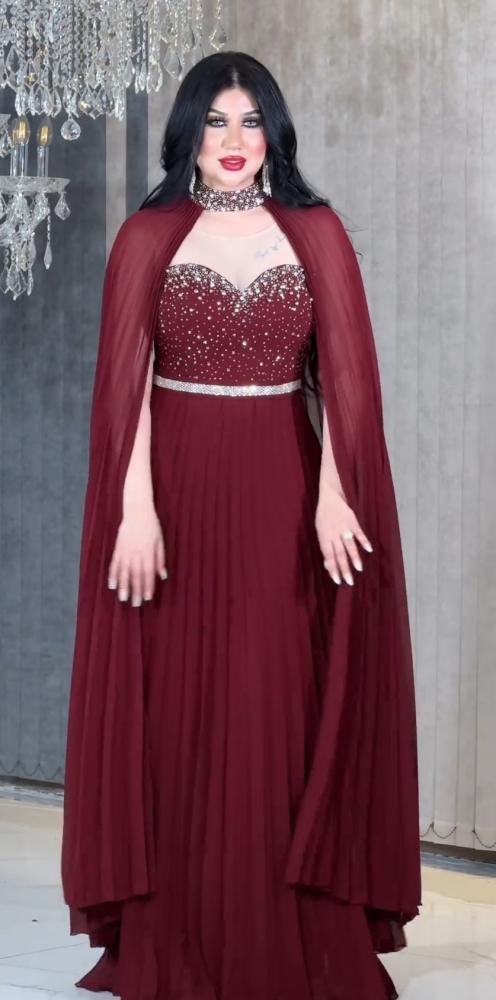 فستان سهرة خامه شيفون ثلاث ألوان تطريز فخم