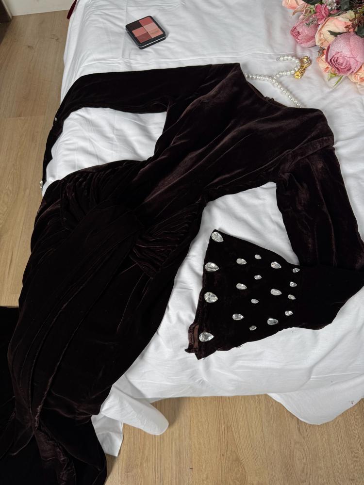 فستان سهرة راقي خامة مخمل امريكي اصلي تطريز يدوي