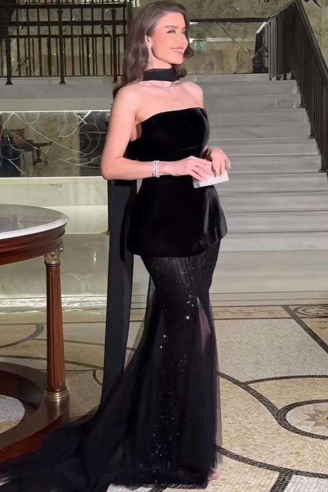 فستان فخم مخمل مع كلفة تطريز +شيفون