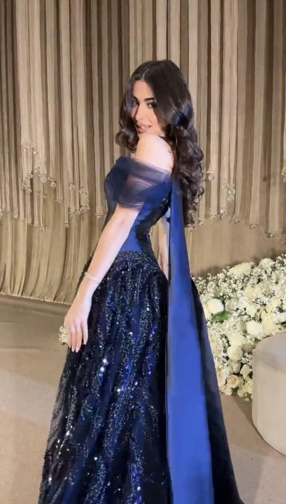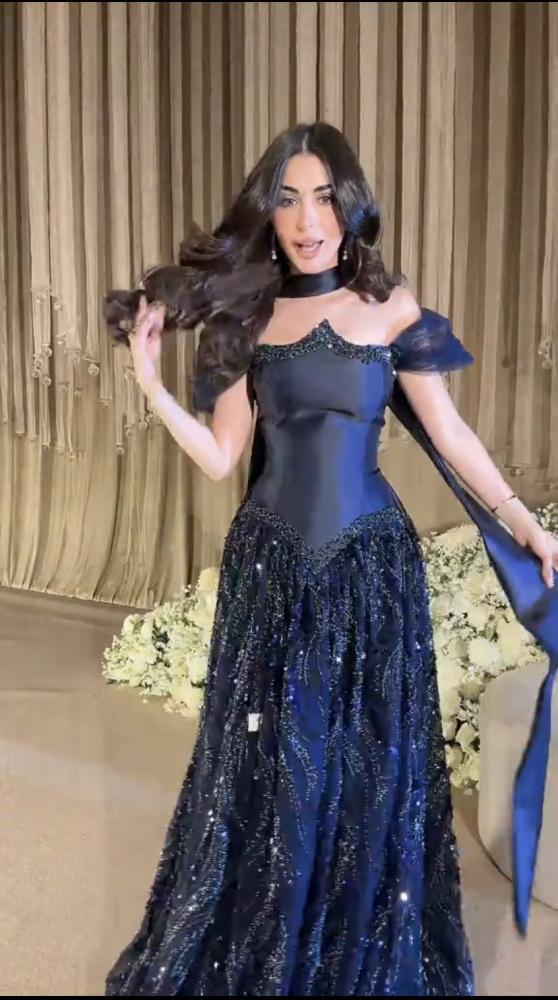 فستان قماش تفته مع كلفه مطرزه وتول +تطريز شك